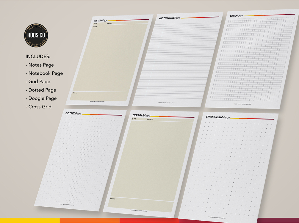 Buying the Daily Planner printable, you also get a Notes Page, Grid Page, Dotted Page, Doodle Page, and Cross Grid Page.
